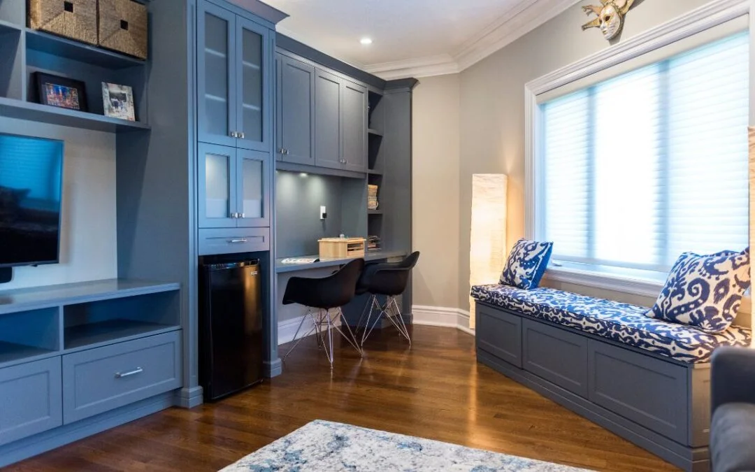 If you are the kind of person that does not need a lot of space or many things to work, you can make a minimalistic setup with just the essentials. Choose a cabinet with foldable desk, this can be bought to match the interior space. You can store documents in the cabinet and clear out everything when not needed. This set up is best if don’t work often and don’t want stuff lying around.