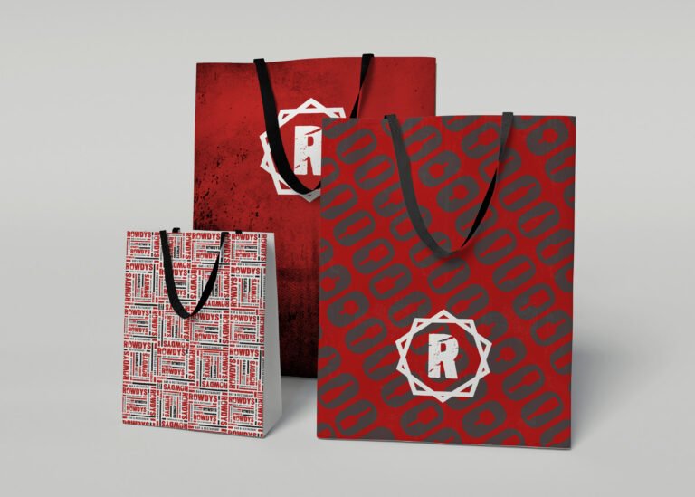 ROWDY’S branding conveys a bold, rebellious identity through cohesive design across packaging, merchandise, and interiors. With gritty visuals and a rich red-black palette, it captures the spirit of youthful energy and urban attitude.