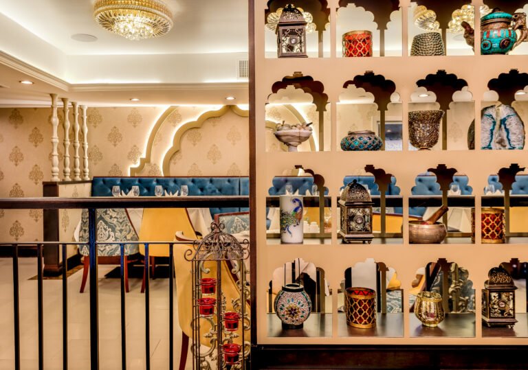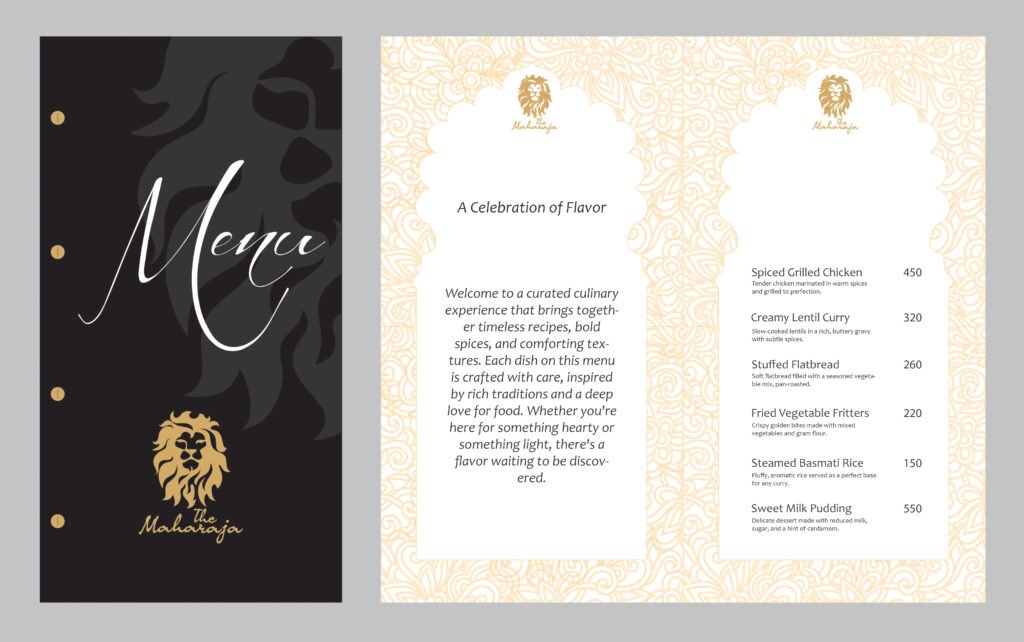 Indian motifs like arches and jalis used in the branding are consistent with the patterns used in the restaurant.Gold is used prominently in the branding material as well for the touch of royalty.