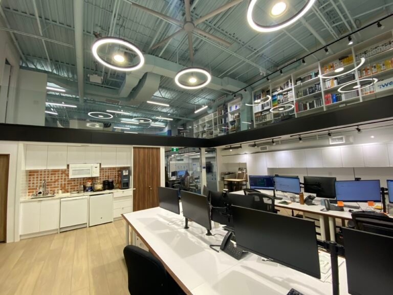 Console-shaped vertical garden at the entrance, panel lighting throughout, two conference rooms, three cabins, and a top-floor lounge with pantry and kitchen—all curated to support comfort, collaboration, and design innovation.
