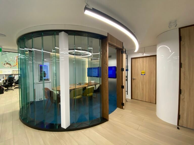 Interior design for our collaborative studio space that reflected the brand’s visual identity through dynamic forms, centralized planning, and multifunctional zones.