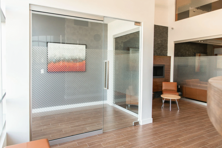 • Glass partitions are thoughtfully used to make the space feel brighter and bigger.