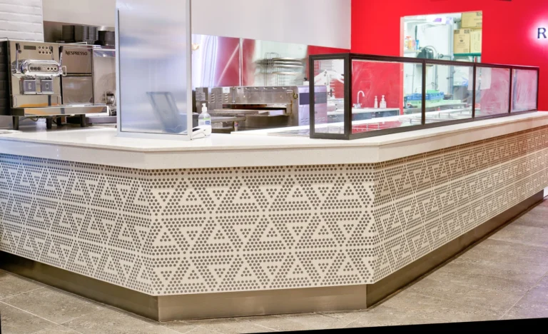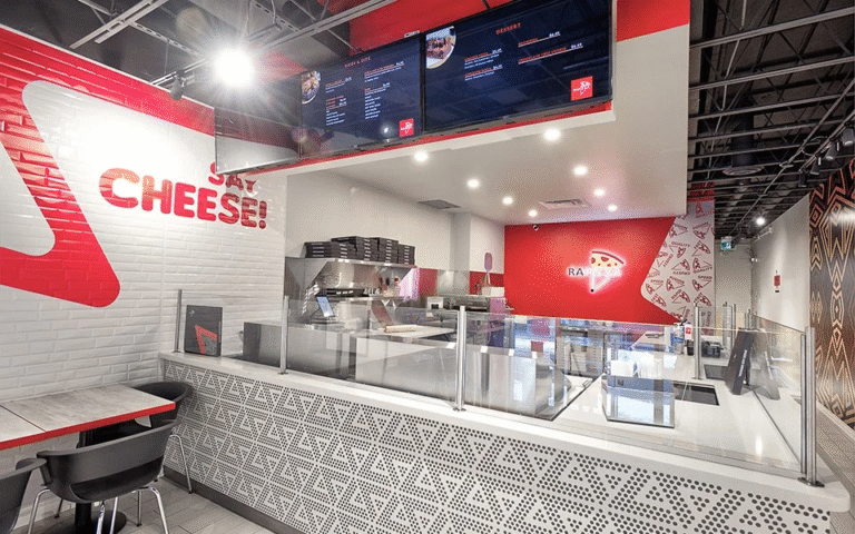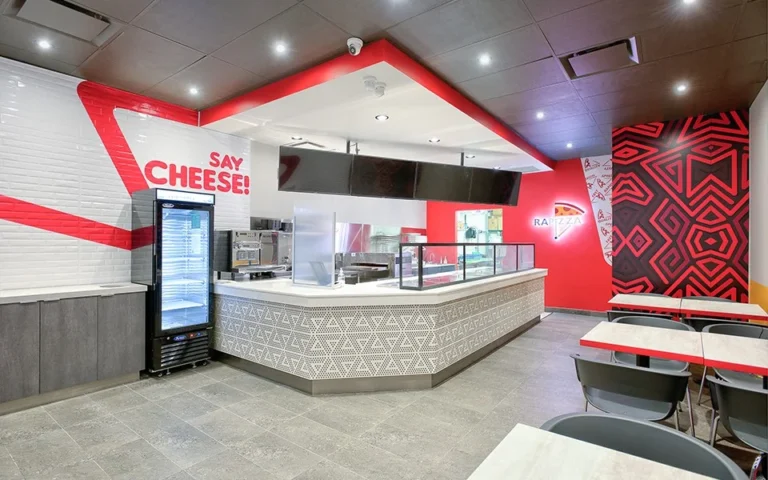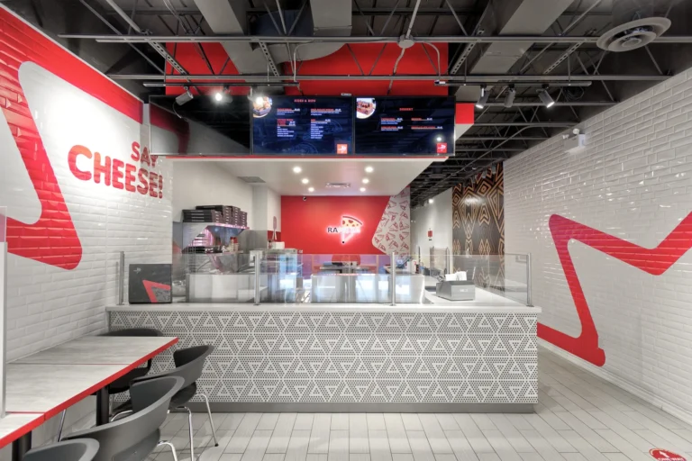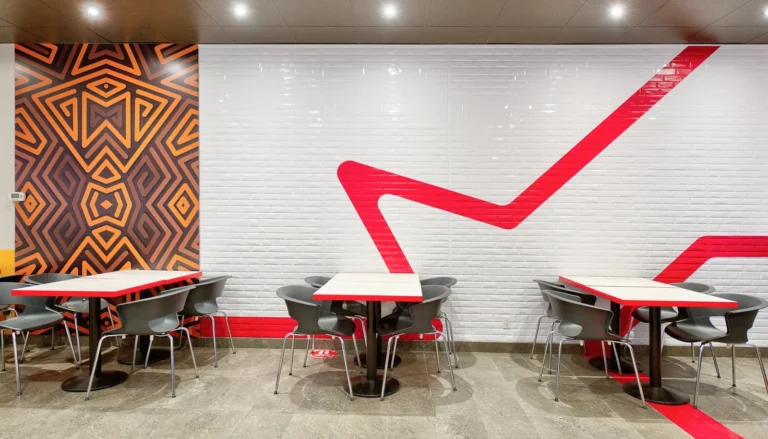 Using Fiery Red, Radiant Gold Yellow, Rusty Brown, and Smoky Black for bold contrast to evoke the brand ideals. Design outlined streamlined counters, clear pathways focusing on minimal clutter. It further Incorporated modern finishes and lighting to energize the space and guide movement.