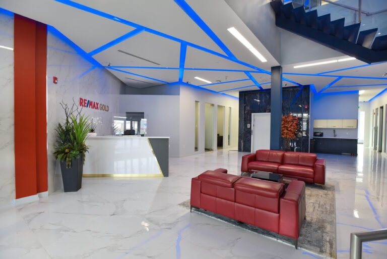Design TWG designed the Remax Gold office in Brampton with a minimalist and modern approach, combining open and private workspaces for flexibility and collaboration. Featuring sleek furniture, wooden accents, glass partitions, and ergonomic layouts, the office creates a professional yet welcoming environment that fosters productivity and comfort.
