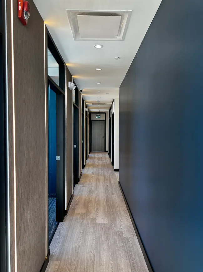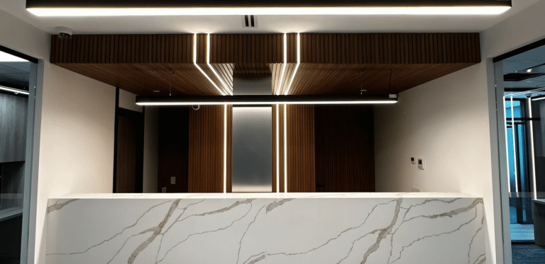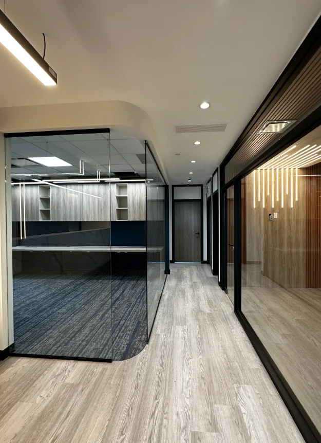 - Lighting: A combination of ambient lighting, pendant fixtures, and accent lighting creates a professional yet inviting environment that enhances focus and productivity.