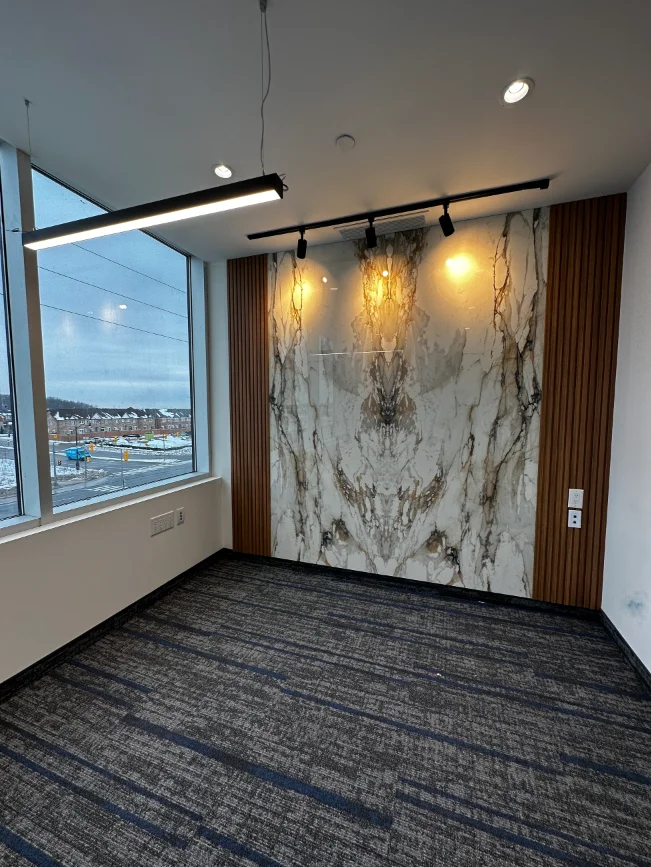 Design TWG created a modern and client-focused office for Remax Millennium in Brampton, blending professionalism with warmth. Featuring sleek interiors, branded graphics, digital displays, and collaborative spaces, the design reflects the company’s values of trust and innovation while enhancing both client experience and agent productivity.