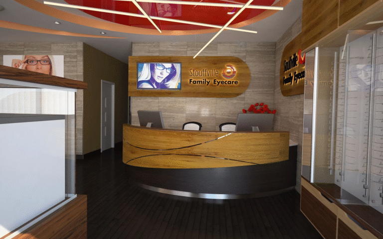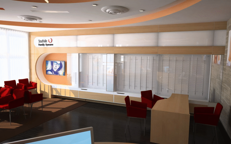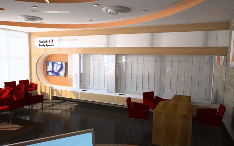 - Stouffville is a family eye care and optometry centre in Stouffville, ON. With patients as young as six months old coming in, we had to create a comforting and relaxing environment for the clinic.